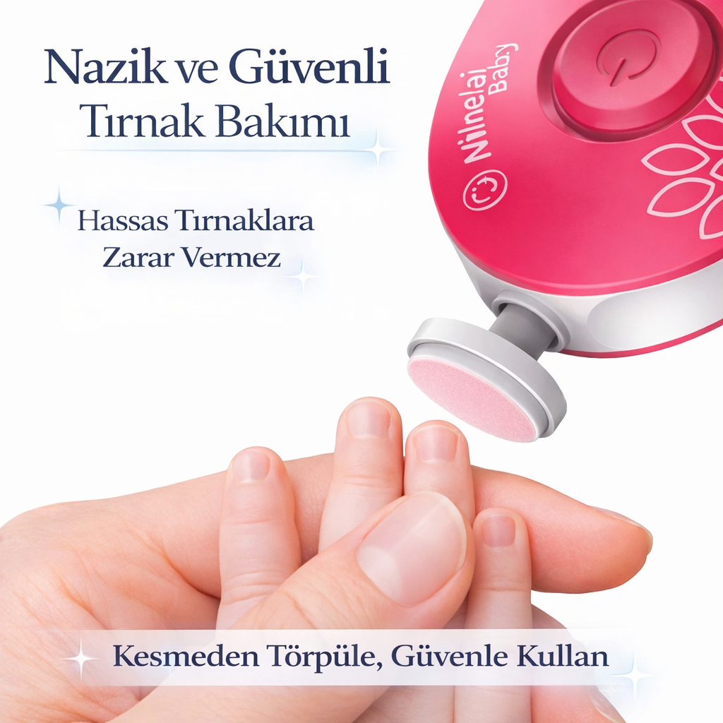 Nazik törpüleme teknolojisi sayesinde bebeğinizin hassas tırnaklarını kesmeden, güvenle ve kolayca bakım yapın.